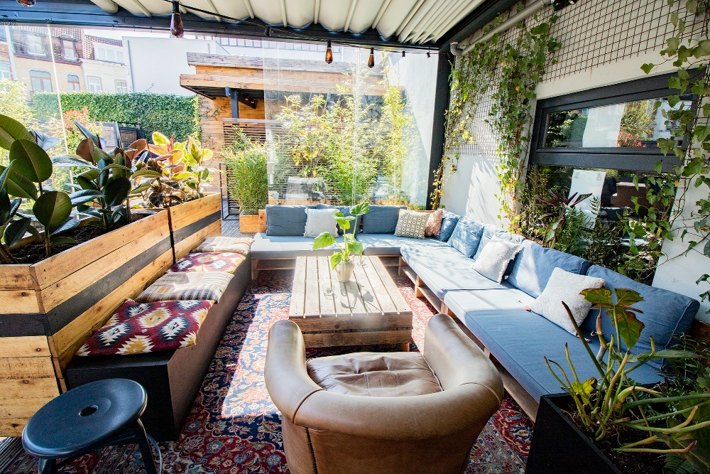 Subdued, indirect lighting, vintage furniture, recycled wood design objects and abundant greenery... The lounge invites you to relax and chat.